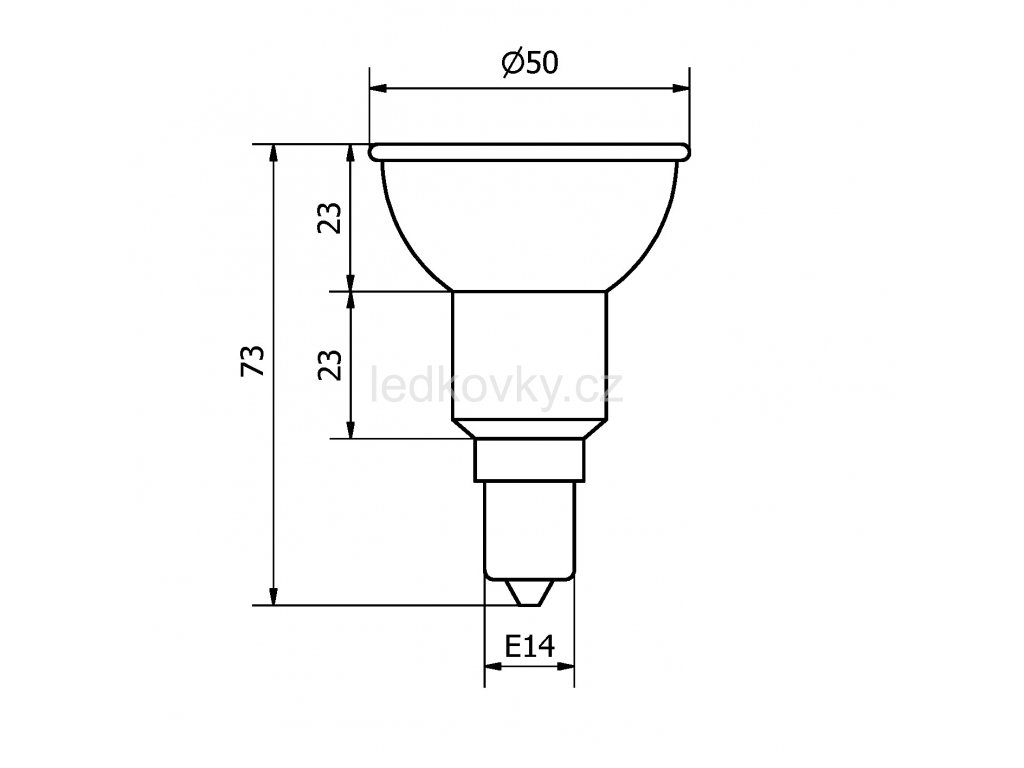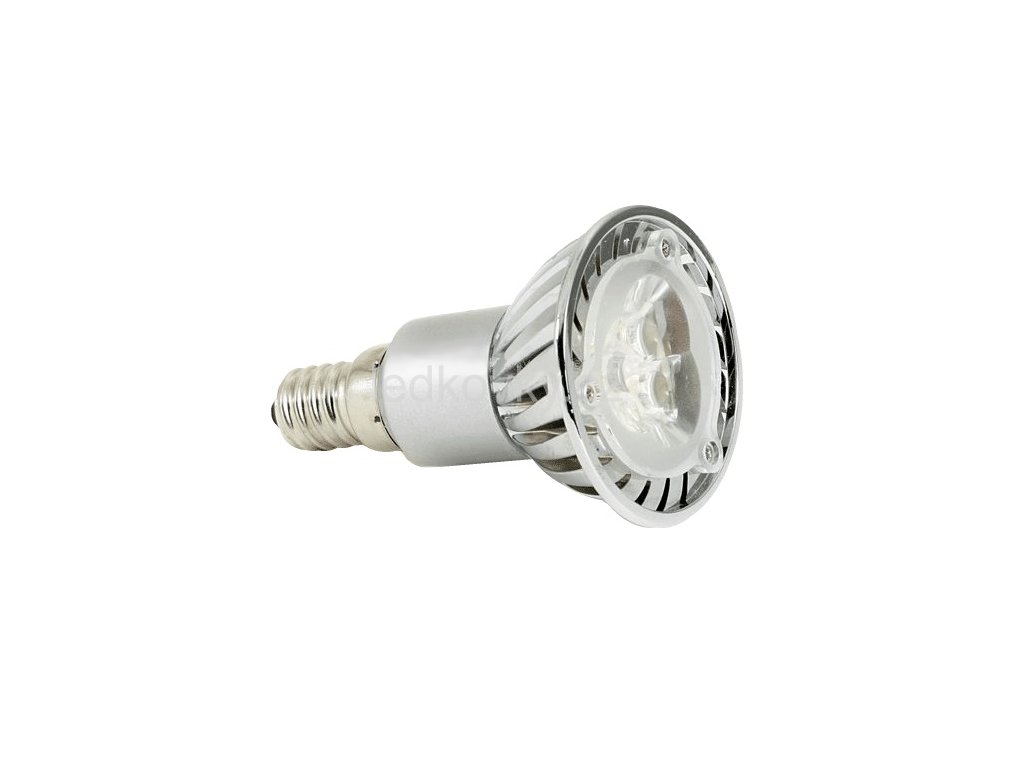 Směrový LED světelný zdroj s paticí E14, barvou vyzařovaného světla teplá bílá a úhlem poloviční svítivosti 34°. LED zdroje světla jsou úsporná náhrada halogenových bodových žárovek.