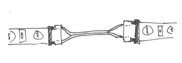 Tímto spojením můžete umístit dva pásky vedle sebe, tím zvýšit svítivost na dvojnásobek, nebo umístit pásky kolmo proti sobě například do rohu.